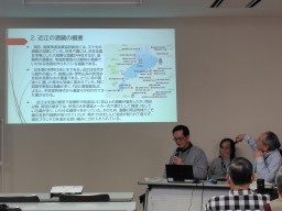 ・午前は、大津市瀬田にある滋賀県埋蔵文化財センターを見学しました。「近江 陸のみち・湖のみち」の展示では、同センター職員の方から、近江が、畿内と東国を往来する主要な交通路である東山道(中山道)、東海道、北陸道が通る陸上交通要衝の地であり、発掘調査により道路遺構が各所で発見されていることや、琵琶湖を利用した水上交通も活発であり、塩津港の遺跡では荷札木簡などの遺物が多数見つかっていることなどを説明いただきました。また、東近江市永源寺の相谷熊原遺跡で見つかった国内最古級のかわいらしい土偶の複製などの展示物などについても丁寧に説明いだだきました。その後、遺跡から出土した土器の破片を職員の方がつなぎ合わせているところや、つなぎ合わせた土器をトレースされている作業風景のほか、収蔵庫などを見学させていただきました。 ・午後は、長寿社会福祉センターにおいて、滋賀県立大学名誉教授の中井均先生から「近江の埋蔵文化事情」についてご講義いただきました。まず、中井先生の自己紹介の後、各学生も順番に自己紹介を行いました。そして、埋蔵文化財とは何か、遺構と遺物などの基本的なことについて説明ただいた後、近江に人がいつ頃住みついたかを琵琶湖の周りの遺跡から発掘された遺物から解き明かし、荒神山古墳、瓢箪山古墳、膳所茶臼山古墳、和邇大塚山古墳が琵琶湖周辺にあることから、琵琶湖を取り巻いて海の王たちが湖上交通を支配していたことなどをユーモアを交えながら教えていただきました。 |