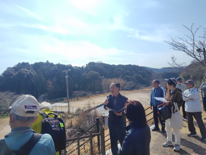 ・講師の中井均先生の案内で、午前に寺前(じぜん)・村雨(むらさめ)城跡(甲賀市甲南町新治)と新宮・新宮支城跡(同)を、午後に和田公方屋敷跡・和田城跡(甲賀市甲賀町和田)を巡り、甲賀の城の特徴を学びました。 ・中世の甲賀では、同名中(どうみょうちゅう)という自治組織によって治められ、近隣の同名中が結びつき、自分たちの土地は自分たちで守るという一揆体制を作り上げ、戦国時代後半には甲賀郡中惣と呼ばれるようになりました。この甲賀郡中惣を組織した土豪・地侍によって、甲賀郡には約300もの城や館が構えられたこと、それらの大半は一辺3~50mの方形単郭の構造であったが、中には8mの大土塁が巡らされているものもあるのが甲賀の城の特徴であると中井先生からまず説明がありました。 ・寺前城と村雨城は、新名神甲賀IC近くの丘陵にあり、尾根の最先端に寺前城、その背後に村雨城が尾根つたいに構えられています。村雨城は、厚い大きな土塁が巡らされているのが特徴で、寺前寺城は堀切で背面防御を固めているのが特徴となっており、村雨城と寺前城は独立した城ではなく連続したひとつの城と考えられると中井先生は述べられました。 ・新宮城は厚い土塁が巡らされているとともに、尾根を切断する大きな堀切が設けられているのが特徴です。また、新宮支城は高い土塁と大きな堀切で囲まれているのが特徴です。 ・甲賀市甲賀町の和田谷には、殿山城、公方屋敷、和田城、公方屋敷支城、和田支城Ⅰ・Ⅱ・Ⅲの7つの城館が築かれています。この和田地域を支配していたのが和田氏で、室町幕府に仕えていた和田惟政(これまさ)は、覚慶(後の足利義昭)を自らの屋敷に匿いましたが、この屋敷が公方屋敷跡と推定されており、和田惟政の供養塔と伝わる五輪塔があります。 ・和田城は、和田谷に最奥部にあり、一辺50mの主郭を持ち、高さ7mの土塁や、幅10m、深さ7mの堀切によって敵の侵入を防ぐ造りとなっています。 |
