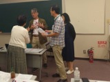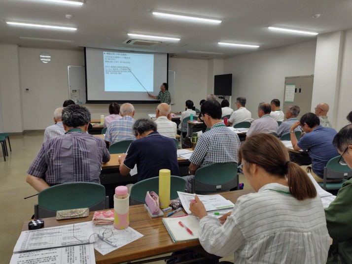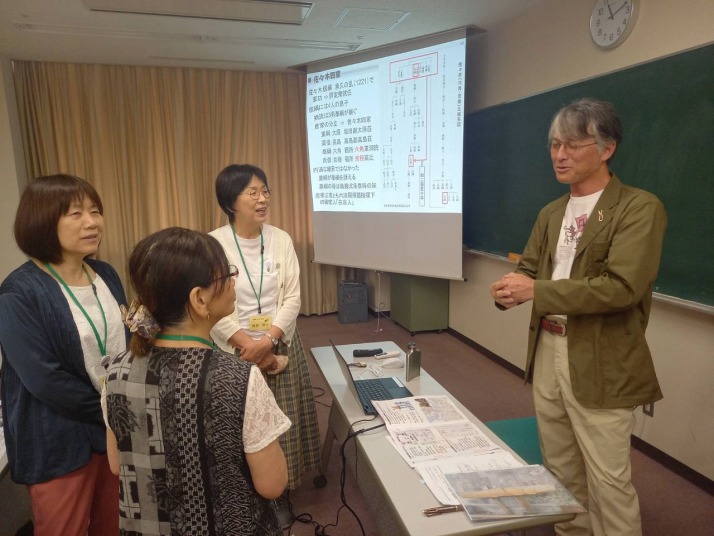 ・民俗学とはどのようなものか、また、日本一である滋賀の民俗学の状況について話された後、農作物の栽培法等を記した江戸期の農学者である宮崎安貞著「農業全書」、大蔵永常著「広益国産考」、児島如水・徳重著「農稼業事」等について紹介していただきました。 ・特に「農稼業事」を著わした児島如水と孫の徳重は、近江の出身であり、稲の掛干しの仕方などが記されていることなどを教えていただきました。 |