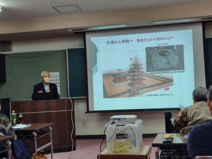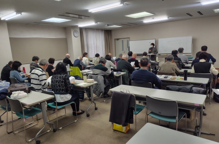 ・講義の目的は、近江が登場する文学作品を素材に、近江の風土を知り、近江の良さに気づき、併せて本の楽しさに触れることであると述べられた後、3~5月全9回の講義の内容を紹介されました。 ・また、「水の国」・「道の国」である近江の湖北・湖東・湖南・甲賀・湖西のエリア毎に特色ある風土について説明されました。 ・午後は、近江ゆかりの主な文学作品の概要、考察を紹介されました。これらの作品を通して、近江の見慣れた風景を新鮮な風景に見直すきっかけになることが期待されます。 |