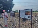 ・午前は、愛東コミュニティセンターにおいて講師の山本一博先生が、「盛者必衰 六角の没落」と題して、まず、午後に訪れる「鯰江の城」について説明された後、鯰江の城落城後の六角承禎の足跡、足利義昭に従った承禎の長子義堯(義治)、断絶したとされていた六角氏の末裔が明治まで加賀藩士として存続していたことが平成末期に判明したこと、義昭の帰洛願望と本能寺の変後に秀吉の承諾により帰洛できたことなどを教えていただきました。 ・特に、二重角馬出しを持つ井元城は従来から信長軍の付城とされてきたが、森村城と中戸城とこの井元城を合わせたものが信長公記に出てくる「鯰江の城」ではないかという見解もあることを詳しく説明していただきました。 ・午後は、井元城址、中戸址、鯰江城(森村城)址を順次巡り、愛知川の河岸段丘を巧みに利用した土塁、堀跡などを山本先生の案内・解説により見学しました。 |