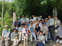 ・粕渕先生の案内・解説で、彦根東高等学校敷地内にある大正天皇御座所(宿泊施設)、銀杏の精子を発見した平瀬作五郎を讃える大銀杏などを見学しました。 ・粕渕先生が収集された升(ます)、斗掻(とかき)、道中着(合羽)、引札(カレンダー)などの現物を見せながら使い方などを説明されました。 ・彦根藩より明治4年に出版された「蚕桑図解」、「製茶図解」について説明され、近江で行われた茶の栽培から茶摘み、製茶に至る過程等について学びました。 |