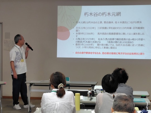 取り上げたテーマは、織田信長、片桐且元、京極高次、山内一豊、朽木元綱、足利義昭、明智光秀、佐々木六角氏一族、お鍋の方などの人物、安土城、観音寺城などの城郭のほか、本能寺、十二坊、元亀争乱、近江一向一揆、楽市楽座、近江の道など学生の関心に応じて様々でした。
