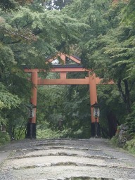 ⑮ 日吉大社(9) 山王鳥居(滋賀県指定文化財) 山王鳥居(さんのうとりい)は、日吉大社独特の鳥居で、よく見かける神社の鳥居の上に山型の破風が取り付けられています。 |