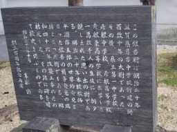 ⑦ 初代校長外村省吾顕彰碑 彦根学校(現彦根東高等学校)開校初代校長外村省吾を讃えるため平成8年(1996年)創立120周年記念として建てられた顕彰碑です。 |