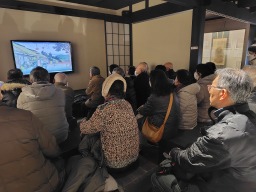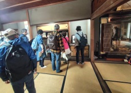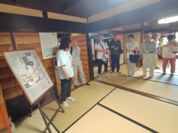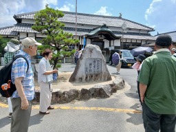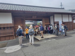 ②近江日野商人ふるさと館「旧山中正吉邸」(2) (蒲生郡日野町西大路) 近江日野商人ふるさと館「旧山中正吉邸」の職員さんに館内を案内してもらいました。 山中正吉家は、天保初年から今の静岡県富士宮市で酒造業を営んだ日野商人です。日野町西大路に残る同家の屋敷は、日野商人の代表的な本宅建築「旧山中正吉家住宅」として、平成27年に町の有形文化財に指定されたとのことです。 建物は、いく度かの増築・改築がなされ、日常生活の場であった主屋は、田の字型の四間取り型を基本とすることなどの説明を受けました。五口くど(カマド)を備え付けた台所のほか、洋間、来客専用の浴室などを見学しました。 見学後、昼食に「日野の伝統料理を継承する会」が調理された「鯛そうめん御前」を館内でいただきました。 |