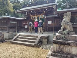 ⑦ 日吉大社(1) 西本宮楼門(重要文化財) 日吉大社は、およそ2100年前に創祀された全国3800余の分霊社(日吉、日枝、山王神社)の総本宮です。平安京遷都の折には、都の魔除・災難除を祈る社として、また伝教大師が比叡山延暦寺を開かれてよりは天台宗の護法神となり、今日に至っています。織田信長の焼き討ちにより、以前の建造物等すべて灰燼に帰しましたが、その後の復興によって今日の姿となっています。 日吉大社は、大きく西本宮と東本宮からなり、西本宮には、楼門、拝殿、本殿が配置されています。 講師の県文化財保護課の福吉直樹先生からは、西本宮楼門は桃山時代天正14年(1586年)頃に建築された入母屋造、桧皮葺、三間一戸の楼門ですと教えてもらいました。 |