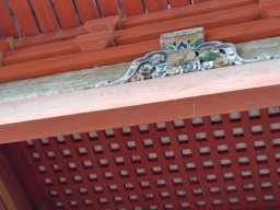 ⑧ 日吉大社(2) 西本宮楼門 蟇股(かえるまた) 西本宮楼門の1階軒下前後には、極彩色に塗られた「蟇股(かえるまた)」があります。 |
