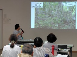 ① 荒神山自然の家にて 午前中、荒神山自然の家において、谷口先生から荒神山古墳の特徴などを学びました。 |