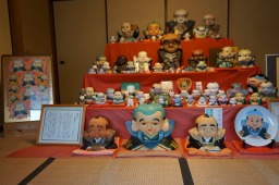 ② 柏原宿歴史館(2) 数多くの福助人形が展示されていました。 福助人形は、柏原宿の伊吹もぐさ本舗「亀屋左京」(創業350年)の番頭をモデルに作られたと言われています。(福助人形のルーツはこれ以外にも諸説あるそうです。) 46期地域文化学科ホームページのトップページにも柏原歴資料館展示の福助人形を掲載しています。 |