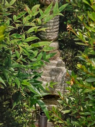 ⑮法雲寺(3) 手水鉢 (蒲生郡日野町西大路) 宝篋院塔(ほうきょういんとう)の笠石の部分が手水鉢として用いられたとのことです。 |