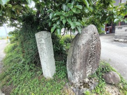 ⑥ 道標やくしみち 享保2年(1717年)に建立され、漢字、変体かな、ひらがなの3書体で刻まれている西薬師(泉明院)への道しるべです。 |