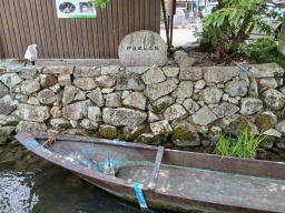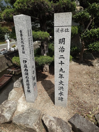 ① 乙女ヶ池 万葉の時代は「香取の海」と呼ばれる琵琶湖の入江でした。その後は大溝城の外堀として利用されましたが、現在は、散策や釣りを楽しむことができる内湖となっています。昭和30年代には真珠の養殖もされていました。柿本人麻呂歌集に収められている「大船香取海慍下何有人物不念有」(大船の香取の海にいかり下ろしいかなる人か物思はずあらむ)の万葉歌碑があります。また、池の真ん中にある太鼓橋は、NHK朝の連続テレビ小説「ごちそうさん」のロケ地にもなりました。 |