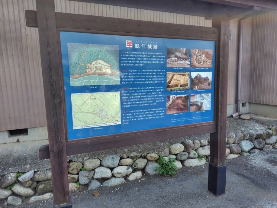 | ⑧鯰江(森村)城址(1) (東近江市鯰江町) 鯰江町自治会館横にある鯰江城跡案内板のところで記念撮影です。 ※ 写真をクリックすると拡大画像を見ることができます。 |