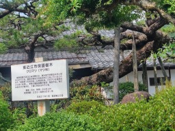 | ⑬ 信長駒繋ぎの松(3)(東近江市甲津畑) また、この松には、次のとおり「東近江市保護樹木」との案内板も掲げられています 【東近江市保護樹木 クロマツ(マツ科)】 織田信長が近江に来る際には、速水家で休憩されたと伝えられている。信長が馬をこの松の木につないでいたことから「信長馬つなぎの松」と呼ばれる。クロマツは海岸沿いに多く生育し、多数の園芸品種がある。指定木は、枝には添え木が施され、丁寧に剪定されている。 樹高:6m 幹周:245㎝ 推定樹齢250(伝承450)年 平成21年1月 指定第25号 ※ 写真をクリックすると拡大画像を見ることができます。 |
