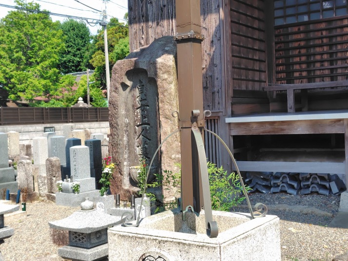 ⑥ 西教寺(6) 明智光秀妻熙子の墓と芭蕉句碑 天正4年(1576年)に明智光秀の妻煕子(玉子(後の細川ガラシャ)の母)が亡くなると、光秀公は西教寺に煕子の墓を建て自ら埋葬しました。写真右端が煕子の墓になります。写真中央には、松尾芭蕉の句碑「月さびよ 明智が妻の 咄(はなし)せむ」が建てられています。 |