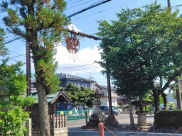 ⑤ 白鳥神社〔白鳥社城跡〕(1)(東近江市市原野町) 東近江市市原野にある白鳥神社の鳥居です。立派な勧請縄(かんじょうなわ)が掛かっています。白鳥神社の境内は白鳥社城址と言われています。 なお、信長公記には、元亀元年(1570年)5月に信長が京から岐阜へ向かう際、浅井方が鯰江城に兵を入れ、市原野で一揆が起こって、信長が行く手を阻まれたことが書かれています。 |