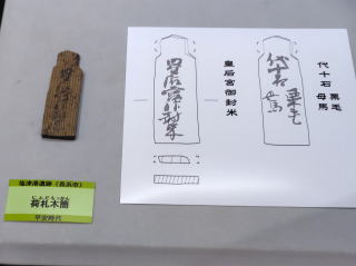 | ⑤無文銀銭・和同開珎(複製) | ⑥ 荷札木簡(塩津港遺跡(長浜市)) | ⑦ 相谷熊原土偶(複製) (相谷熊原遺跡(東近江市)) |