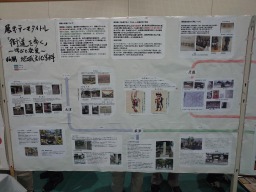 そして、各展示グループ毎に、現地取材、資料収集、原稿作成、展示物の調達等の準備を行った上で、7月4日(金)および11日(金)のクラス活動において、模造紙に写真や説明文を貼付け、また、展示タイトルを半紙に墨書したり、展示物のキャプション作成などの準備を行いました。