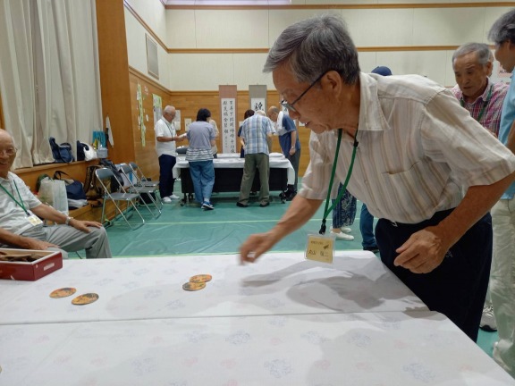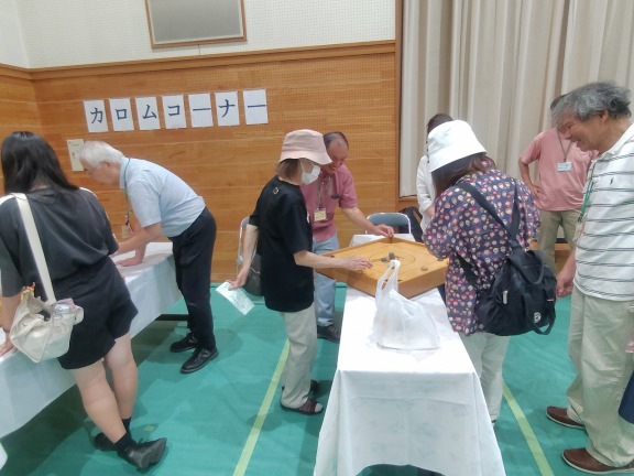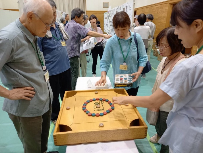 「昔あそび」のコーナーを設け、1日目の7月25日は、彦根地域を中心とした伝統的なゲームである「カロム」を、2日目の26日は、「めんこ」(面子)を用意したところ、子供も大人も大はしゃぎで遊んでいました。