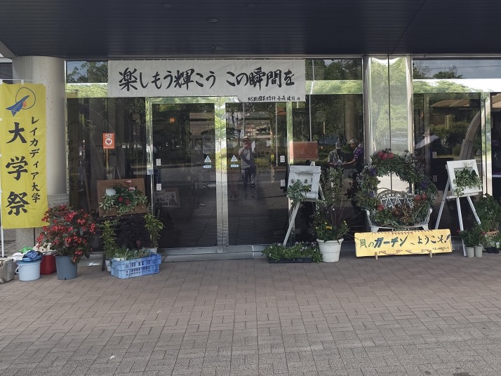 いつも通い慣れたレイカディア大学正面玄関も園芸学科のみなさんのご協力によりお化粧されています。