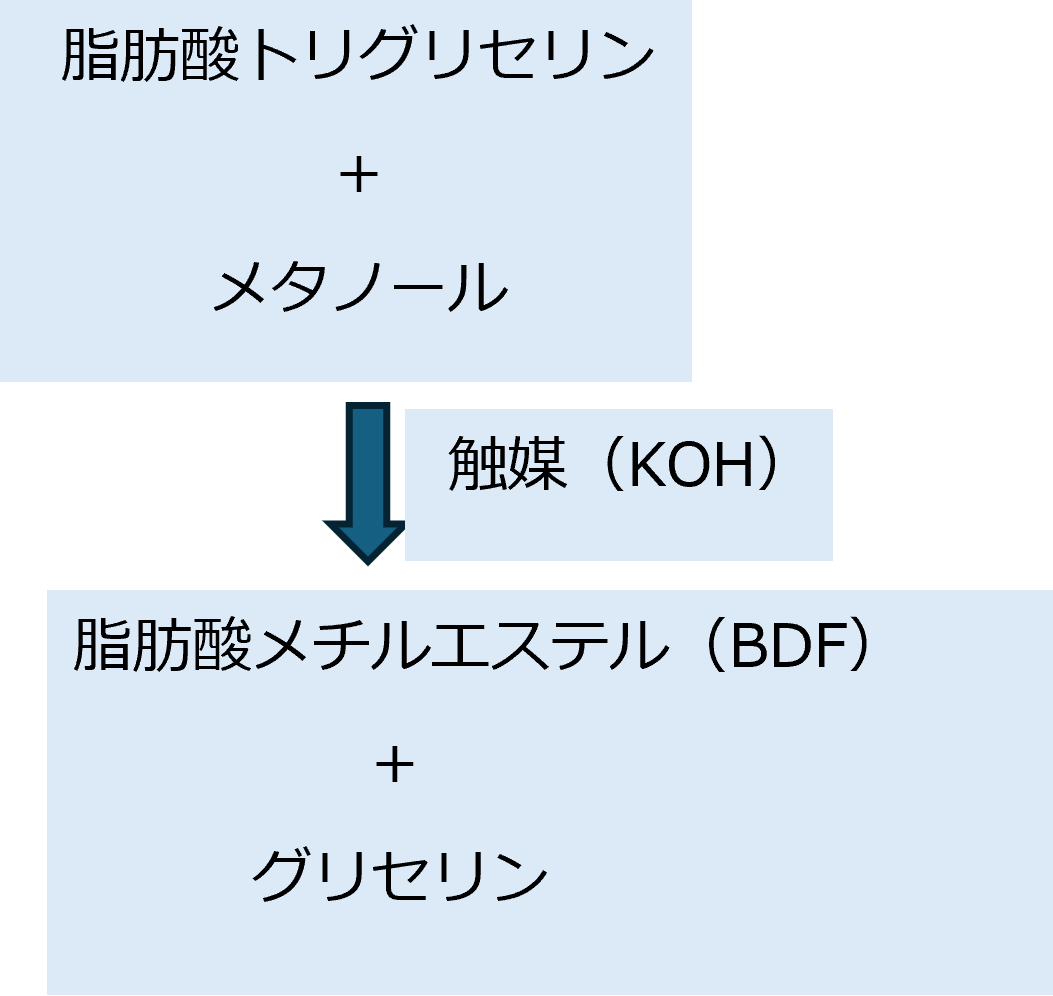 BDFは、酸化劣化しやすいので酸化防止剤が必要、また低温では粘度が上がりエンジン始動性が悪くなる。
