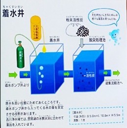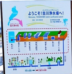 上水道の浄化の仕組みを観る 琵琶湖畔(めんたいパーク横)の滋賀県立浄水場、水道水と工業用水を滋賀県南東部地域に供給 取水口は、沖合440mに水面下6m(湖底から2m)の位置にあり、ポンプで汲み上げている。 取水後、網でこし脱臭してPAC(ポリ塩化アルミニウム)で異物を凝集沈殿させた後、ろ過して取り除く。 消毒して野洲希望ヶ丘の貯水タンクに送り、各自治体の浄水場に配られている。 消毒液:次亜塩素酸ナトリウム、 監視:各種チェックの他に毒物等有無を魚で確認 ![]() ![]() ![]() ![]() |