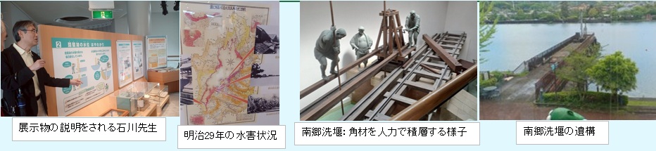 琵琶湖の治水・利水と琵琶湖総合開発② ・法隆寺の建材、船や生活燃料に使われ周りの山がはげ山になり、瀬田川に土石が流入し水が流れ出にくくなる そのため、水害が頻発 → 明治29年洪水では、250日以上も冠水した状態が続く 行基(奈良時代)をはじめ幾度も瀬田川の治水が行われたが、下流が洪水の可能性があり十分でなかった ・1905年 南郷洗堰が建設→水量調節は、大きな角材を人力で上げ下ろししていた ・1961年 南郷洗堰のすぐ下流に瀬田川洗堰を建設、電動でゲートを操作できるようになった ・水位 5か所で測定した平均値、水位限度範囲 ±1.5m、常時満水時 +0.3m、梅雨期 -0.2m、台風期 -0.3m で管理 環境保全に配慮した水位で、葦に付いた魚の卵が乾かないように水位調整もゆっくり行われている ![]() ![]() |