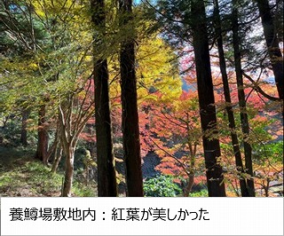 ・養鱒場の周りは紅葉が盛りできれいであった。(温暖化による紅葉の遅れを感じた)