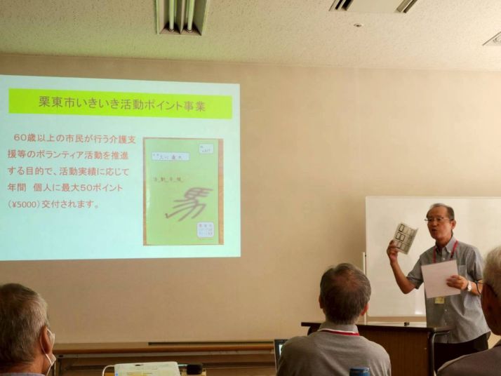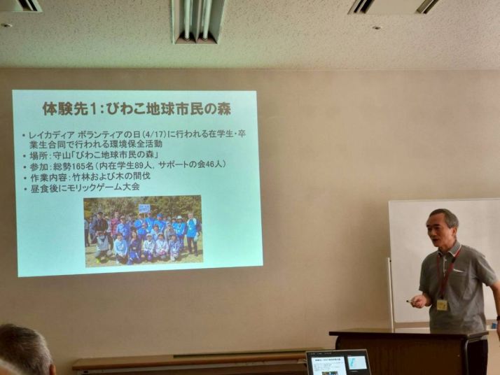 体 験 先 ( 主 な 活 動 内 容 ) 環 境 ・びわこ地球市民の森(木の間引き伐採、森フェスでの竹笛作りなど) ・大津市の幼稚園・小学校での校庭美化作業、樹木の剪定など ・ロクハ公園事務所(環境整備作業) ・野洲図書館(草刈り、木の伐採、ビオトープ管理) ・布引の森(シカ害防止囲い作業、下草刈り、木杭作り、モリアオガエルの卵観察 など) ・びわこ文化公園環境ボランティア 『森の風音』(伐採された木材を処分置き場に運搬する作業) ・志津里山自然学校ボランティアの会(間伐材の焼却など) ・なぎさ芝桜会(なぎさ公園芝桜花壇の内外の除草、清掃) ・横山はらっぱ倶楽部(登山道の整備、シイタケの植菌・タケノコの収穫など) 福 祉 ・デイサービスやすらぎの家(喫茶サービス) ・大津市介護施設 はなさん(要介護施設や宅老所の訪問など) ・湖南市ボランティアセンター(独居老人宅への弁当配り) ・やすの憩(会話が不自由な人への寄り添い活動) ・自助具ボランティアグループ 『ケアクラフト002』(車いす整備・修理など) 子育て支援 ・さわやま♡ こどもほっとランチ(活動支援) ・野洲市の小学校(本の読み聞かせ) ・野洲市の小学校応援団(図書館での本の整理。新刊のフィルムカバー貼り) ・ジーバーぽこぽこ(長浜幼稚園5歳児を対象に紙芝居の読み聞かせ) 観光 ・草津市観光ボランティア協会(養成講座受講) ・古都おおつ観光ボランティアガイドの会(大津の観光案内) その他 ・ロクハ公園事務所(カブトムシ幼虫の飼育・管理) ・日本ボーイスカウト滋賀連盟(滋賀県キャンポリー2025の運営スタッフなど) ・大津市生涯学習センター(大津市立科学館での受付、案内など) ・レイカディア大学同窓会(47期学生募集案内チラシの配布) ・愛知川漁業協同組合(ビワバス用魚道の撤去作業) ・わたSHIGA輝く国スポ・障スポ2025(PRイベントでの案内や清掃など)