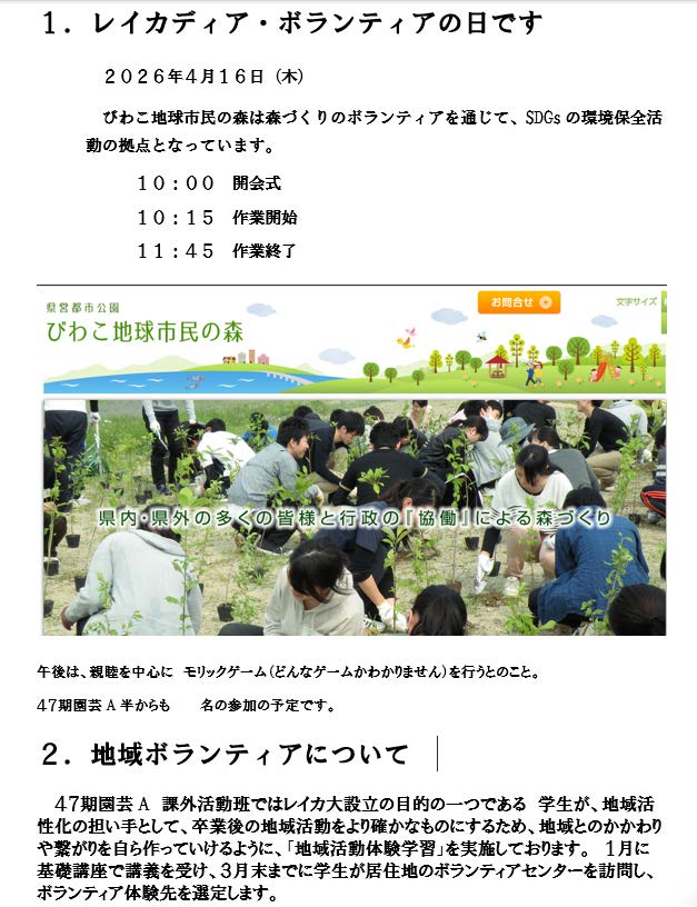 レイカディア大学 草津キャンパス                                学科Topページへ