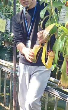 晴天に恵まれた3・6日、100年の歴史を持つ京都植物園で校外学習を行いました 上の画像をクリックすれば花粉飛散テストの動画が見れます 温室の中は、植物園の職員の方が丁寧に説明いただきました ウツボかずらの中をひっくり返していただいたのにはびっくり