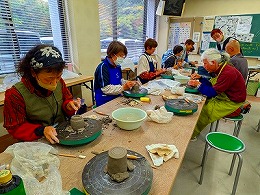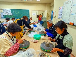| 概 要 | 最初の作品に取り組む。座学に学んだことの応用も試みながら、いろんな陶芸に使用する道具と自らの指を使い、指導を受けながら制作。湯呑づくりには陶芸の基礎が詰まっているので、まず、一つを確実に作る。 | |||