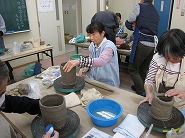 | 概 要 | 取手のつけ方を学ぶための作品として、花入れを制作。取手のつけ方と「ドベ」による接合部隙間処理。衝撃で壊れることがあるので扱いに注意する。 | ||