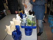 | 〇粘土を手にし、先生の土揉みを見た後、実技をしました(荒練り、菊練り)。 〇荒練りは、粘土を均一にすることが目的。菊練りは粘土の中の気泡を抜くことが目的で 練った後の形が菊の花のようになることからそう言いいます。 〇自分の陶芸作品に刻印するため石膏で落款を作りました。 石膏に自分の名や記号などを刻み、そこに印鑑の形にした粘土を押さえつけて作成。 これを乾燥させて、素焼きして完成。 |