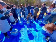 | 成形 | 2026.01.19 | 底の厚さを1㎝とし、太めの紐を積み上げて手びねりで作る。 注意点:外側へ広がるラインは粘土の重みで垂れやすいため、無理に積み上げない 成形状況:本日は半分で終了。口辺部が乾かないようにして翌日の作業に継続き実施。 |