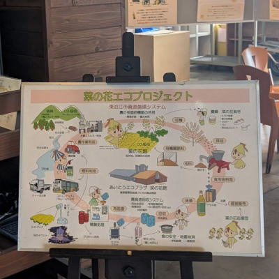 | 場所 | ・名神高速八日市インターより約7分、道の駅マーガレットステーション内。 ・あいとうエコプラザ「菜の花館」は、資源循環型の地域づくりを進める拠点施設で、さまざまな環境学習・体験学習などを行っている。 |