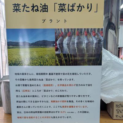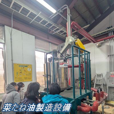 | 学習内容 | 午前:【講義】菜の花エコプロジェクトの成り立ち、波及効果 講師:あいとうエコプラザ菜の花館職員 菜の花エコプロジェクトは、1977年に琵琶湖で発生した赤潮を契機に、生活由来の水質汚染を見直す市民運動として始まった。1980年リンを含む合成洗剤規制するため「せっけん条例」が施行、県民の7割が賛同し、1981年愛東地区でも廃食油回収によるせっけん製造を開始した。 さらに1996年にBDF(バイオディーゼル燃料)精製を開始、カーボンニュートラルでごみ削減にもつながる環境にやさしい燃料として、コミュニティバスや菜の花館の農業機械などに利用されている。 また1998年から近郊での菜種栽培がスタート、菜種油を精製して学校給食利用、油かすの肥料化など食とエネルギーの地域循環を確立した。 市民主体で行政と協働し持続可能な地域づくりのモデルとして全国展開を目指している。 |