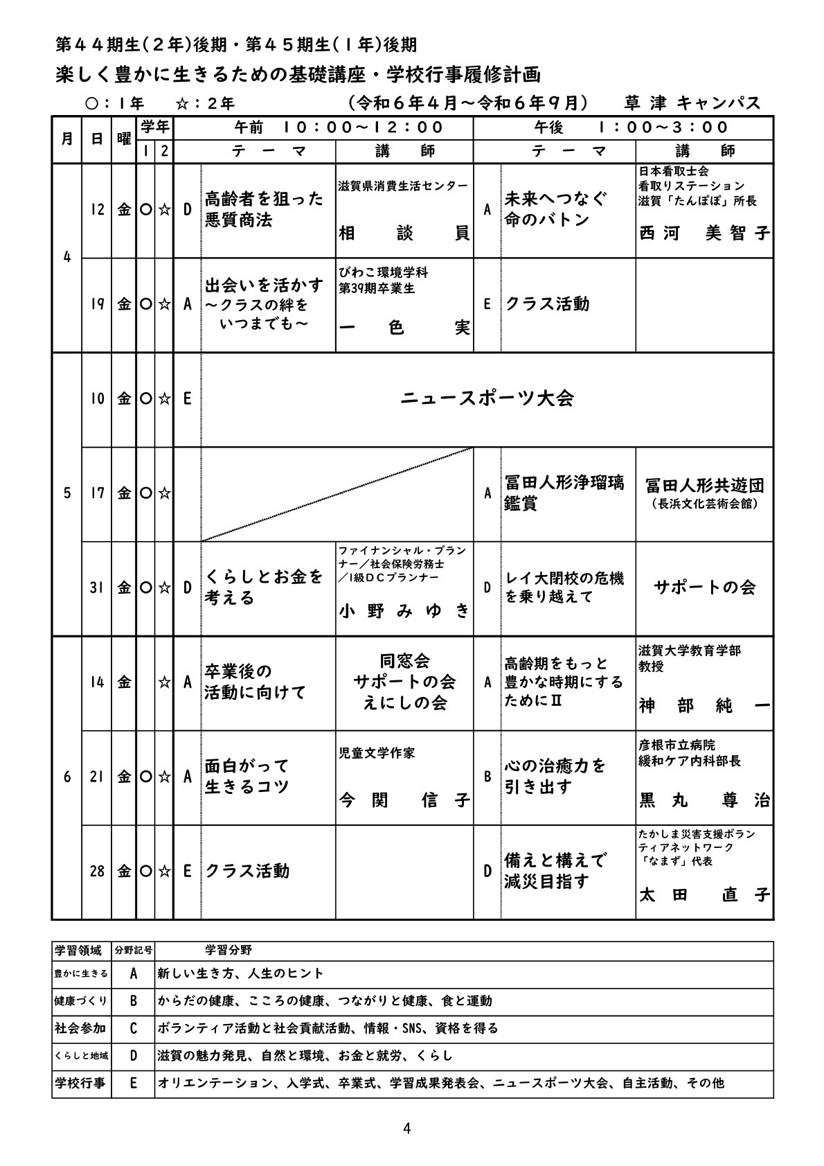 以下、第1学年の講座