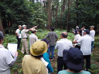 「鯰江城跡」見学に際し山本先生から案内板で説明を受けました。